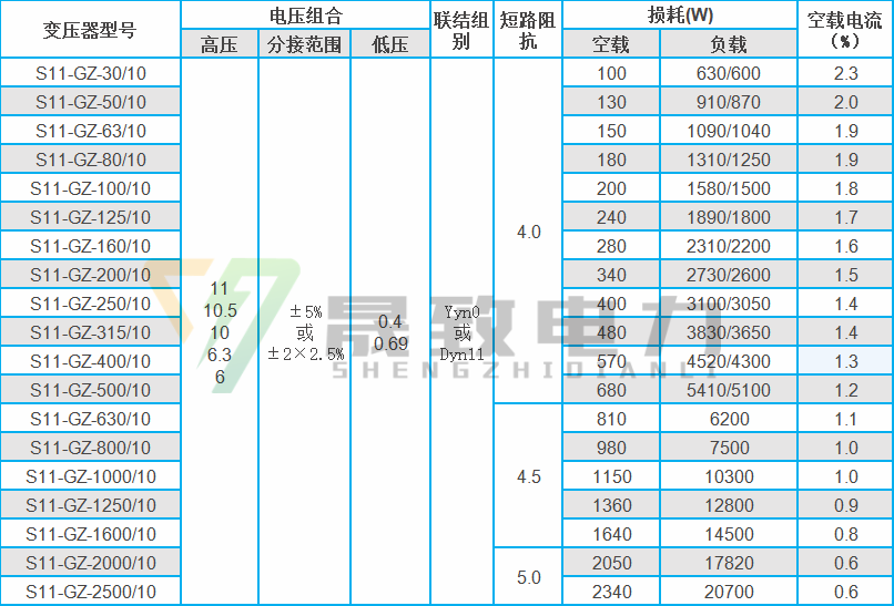 S11高過載變壓器技術(shù)參數(shù):